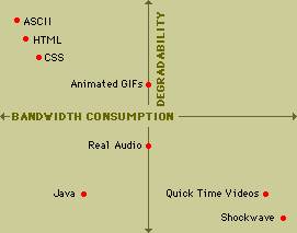 - 横坐标代表带宽,纵坐标代表内容的可降解度。效