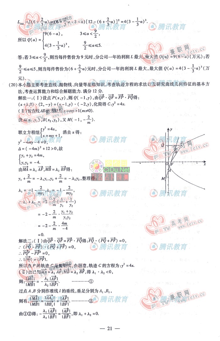 2007年普通高等学校招生考试福建理科数学卷