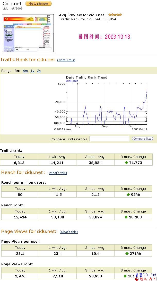 现在(2003.10.18):Traffic Rank for cidu.net: 38,854