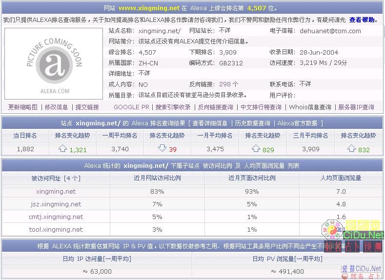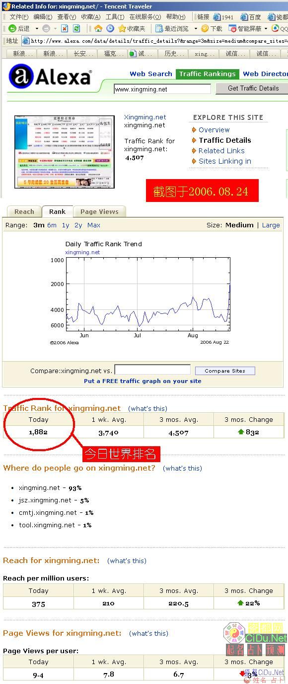 | Alexa慢慢回升,『姓名网』今日1882位 |