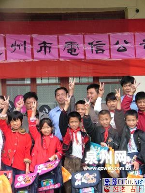 昨日,德化县赤水镇猛虎村猛虎小学的学生们,迎来泉州电信挂钩助学献爱心活动的代表。今年孩子们的礼物是电脑、书包和现金。