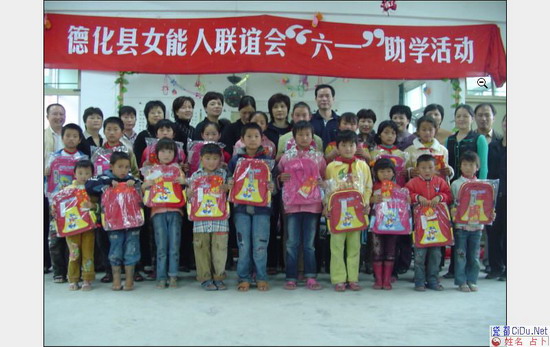 “六一”儿童节,在县妇联领导的引领下,德化县女能人联谊会的女企业家们到上涌中心小学举行“六一”助学捐赠活动。20名受助贫困学生及家长参加了捐赠仪式。 仪式上,女企业家们发给每位受助学生助学金二佰元及一个书包,同时并向学校赠送了价值壹万多元的书籍、电子琴、体育器材等教学用品。县妇联苏培娜主席、镇党委苏瑞国书记、女能人联谊会郑华娜会长、县教育系统党委林丽芳副书记分别发表了讲话,她们鼓励孩子们好好学习,长大后回报社会。受资助的孩子们捧着心爱的“六一”儿童节礼物,在浓浓的关爱之情中渡过了难忘的节日,他们向女企业家们表达了他们的感激之心和喜悦之情,并表示今后将更加努力学习,以优异成绩来回报社会对他们的关爱。