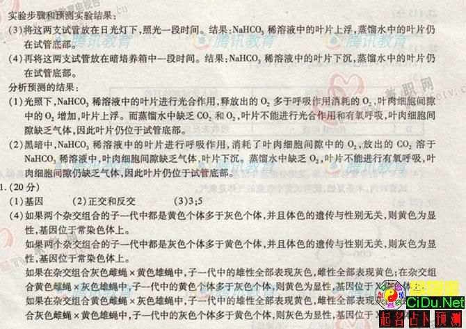 [组图]2006年高考(福建卷)理科综合试题答案         ★★★
