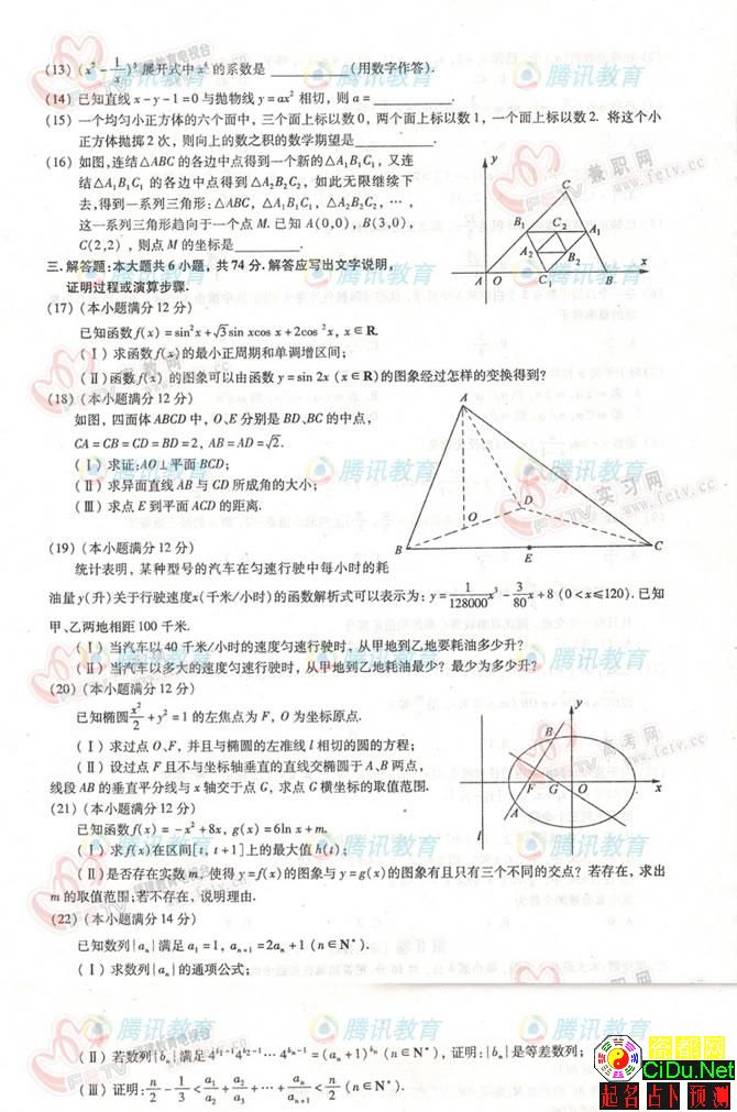[组图]2006年高考(福建卷)数学理试题         ★★★