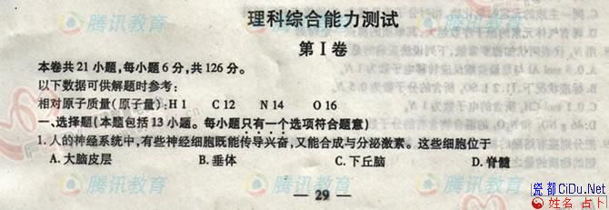 [组图]2006年高考(福建卷)理科综合试题         ★★★