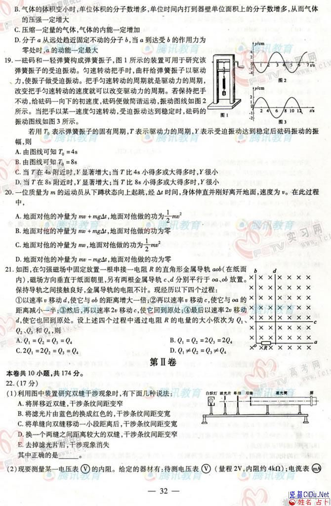 [组图]2006年高考(福建卷)理科综合试题         ★★★