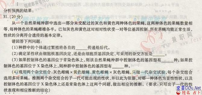 [组图]2006年高考(福建卷)理科综合试题         ★★★