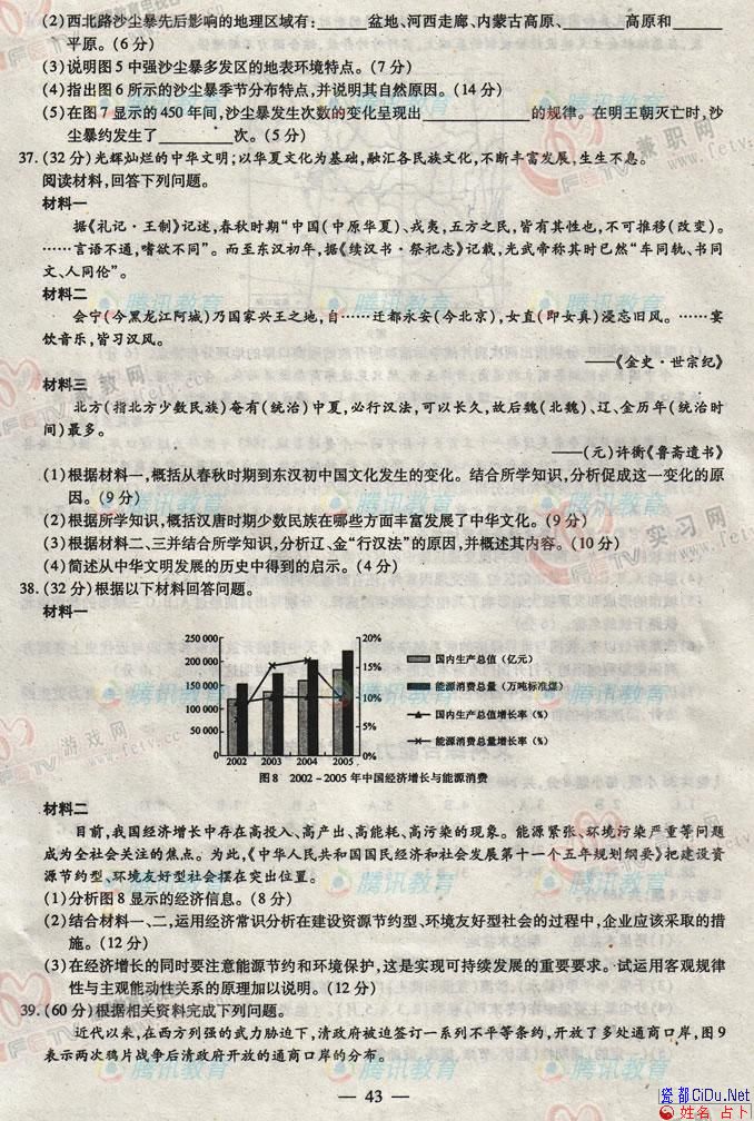 [组图]2006年高考(福建卷)文科综合试题         ★★★