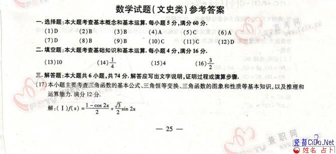 [组图]2006年高考(福建卷)数学文试题答案         ★★★