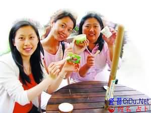 图为台湾同学请庄晓娟(左一)吃冰激凌。