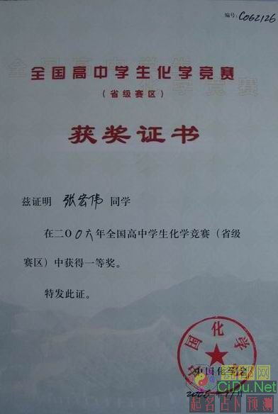 [组图]德化一中张宏伟同学获2006年化学奥赛省一等奖 |