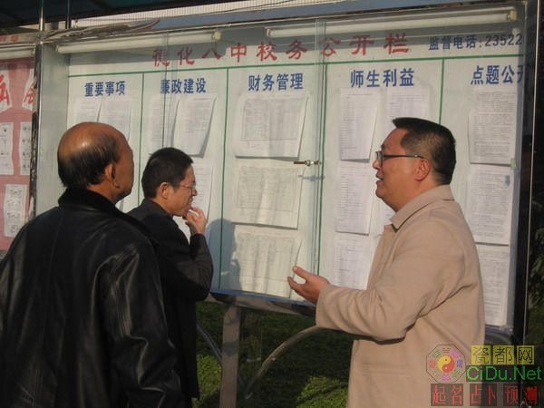 12月26日下午,以泉州市政协委员、北师大泉州附中特级教师张培基为组长的市民主评议行风工作检查组在县教育纪工委书记郭昌筑陪同下莅临八中检查工作。 到校后,检查组进行了实地检查,重点查看了学校的校务公开栏。//by http://CiDu.Net/
