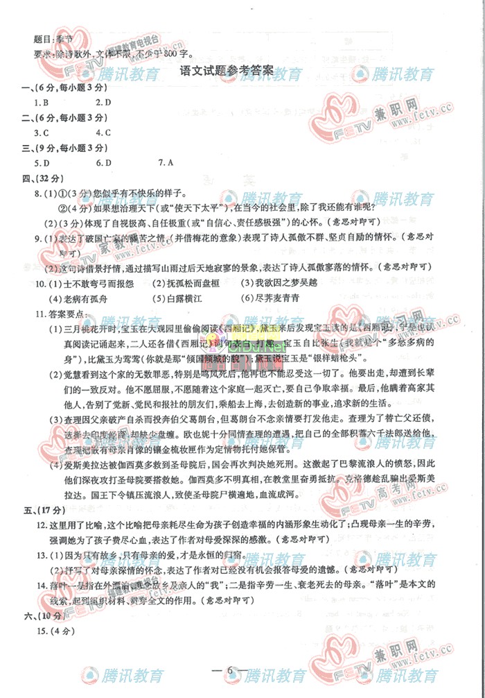 [组图]2007年普通高等学校招生统一考试福建语文卷         ★★★