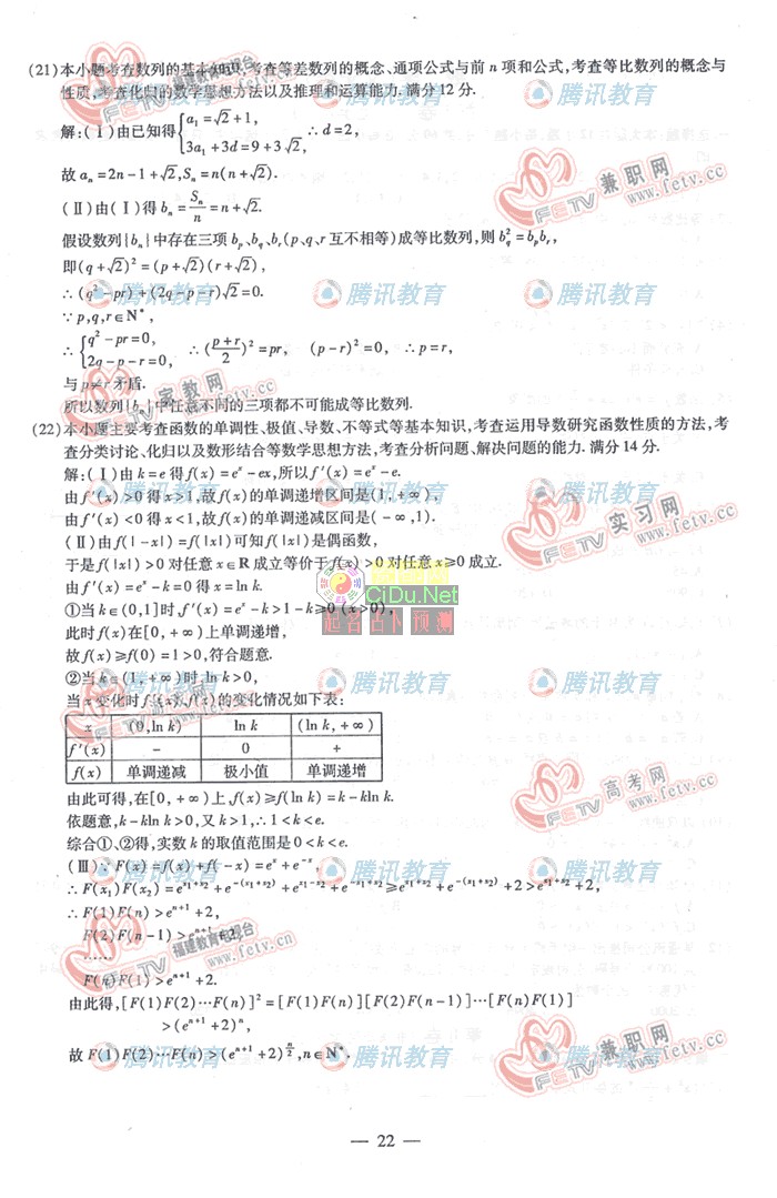 [组图]2007年普通高等学校招生考试福建理科数学卷         ★★★
