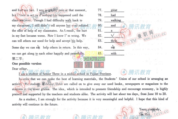 [组图]2007年普通高等学校招生统一考试福建英语卷         ★★★
