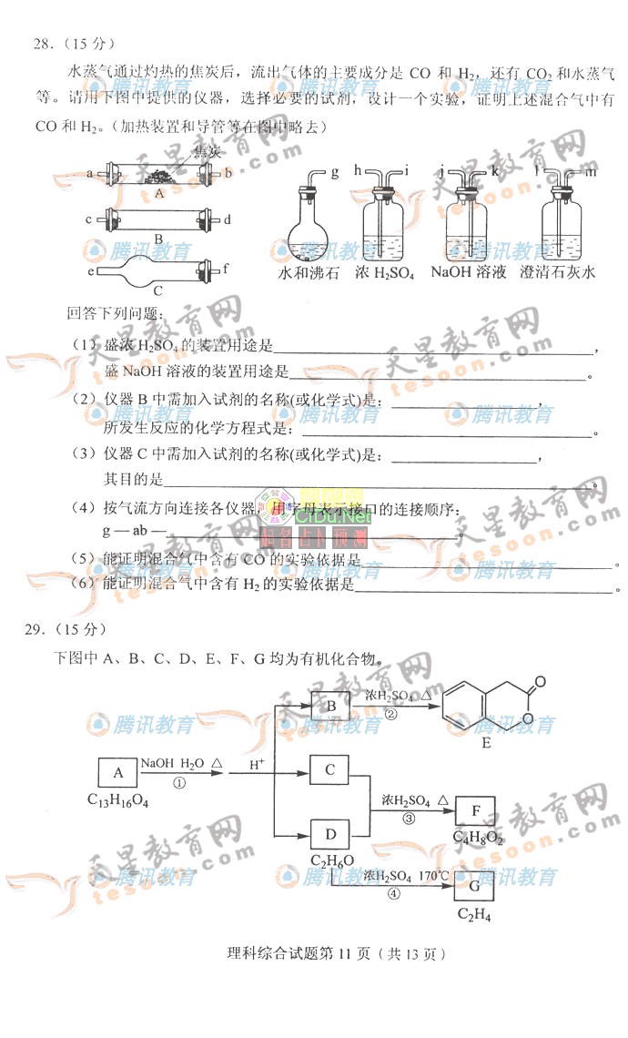 [组图]2007年普通高等学校招生考试全国1理科综合卷         ★★★