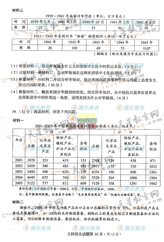 [组图]2007年普通高等学校招生考试全国1文科综合卷         ★★★