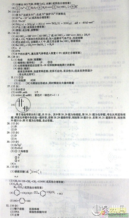 [组图]2011福建高考试题答案上网(理综)         ★★★