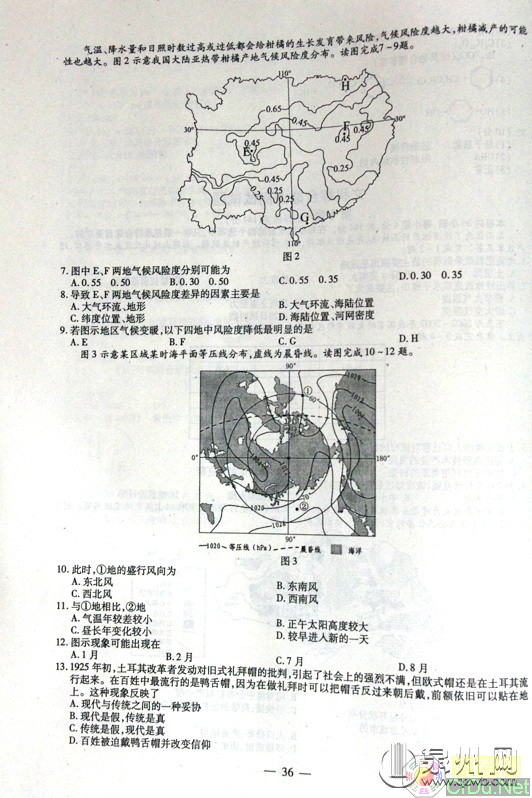 [组图]2011福建高考试题答案上网(文综)         ★★★