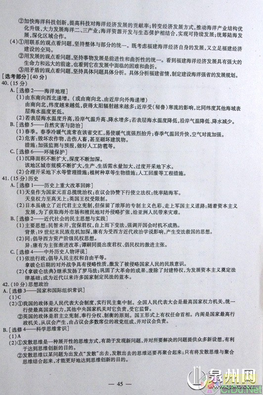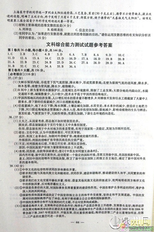 [组图]2011福建高考试题答案上网(文综)         ★★★