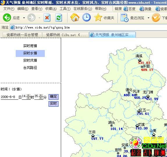 现在的水库水位情况请看:http://www.cidu.net/tq/qzxq.htm