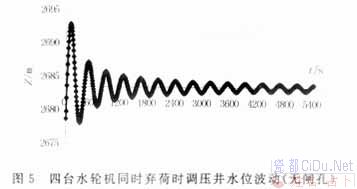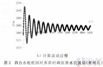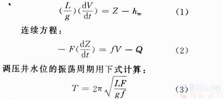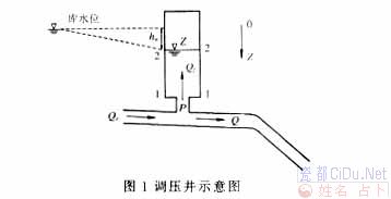式中:L——引水 Z——调压井波动水位(以库水位为基准面,向下为正); V——引水道流速; f——引水道断面面积; F——调压井断面面积; hw——水头损失; Q——水轮机引用流量,见图1。//by http://CiDu.Net/