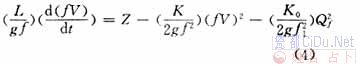 式中 K——引水道的沿程水头损失和局部水头损失系数之和; K0——为调压井阻抗孔的阻抗系数; Qf——进出调压井的流量(以进入调压井为正)。 由公式(2)可得阻抗式调压井的连续方程为: