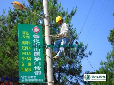 今年以来,我县城区及郊区电杆上出现了许多悬挂着的各式标语条幅、广告招牌等,长期未拆除,给电力线路维护、抢修增添了障碍,造成电网的安全运行带来了隐患。德化供电公司根据《电力法》第54条和《电力设施保护条例》第14条第七款规定,依法对电力设施上的各种横标、招牌进行了清理整顿。下发通知物主限期拆除,对逾期不拆除的,由供电公司的经警和电力110人员予以强行拆除等措施依照有关规定进行处理。以保障我县供电线路的安全稳定运行。
