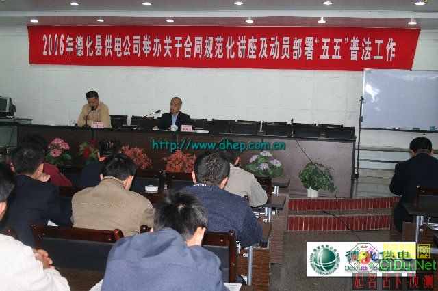 ◆ 德化供电公司动员部署“五五”普法工作 11月24日举办的普法讲座上,柯宏元副总经理宣传贯彻了17日召开的全县“四五”普法总结表彰暨“五五”普法动员会议精神,全面部署公司“五五”普法工作。就如何做好我公司系统的“五五”普法工作,柯副总指出:一是思想要统一。公司所属各有关单位和人员要统一思想认识,切实增强做好“五五”普法工作的责任感和紧迫感;二是确保有组织机构有计划。公司应尽快成立“五五”普法工作领导小组并设立普法办公室。公司系统要制定 “五五”普法规划并做到每年有具体普法计划。三是要深入开展法制宣传教育。突出重点,普治并举,不断开创法制宣传教育工作新局面。四是普法工作要列入单位的年度考核工作。德化供电公司要根据普法工作完成情况给予相应奖惩。