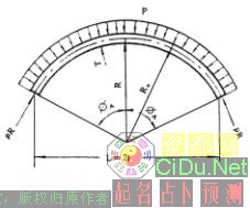 R辆——顶拱轴线的半径(m),初估时可取 ,此时相当于顶拱中心角为113°。在实际工程中常以顶拱外弧作为拱坝的轴线。//by http://CiDu.Net/