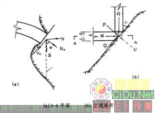 式中 ——拱座面与垂线的夹角; G——拱端面上悬臂梁自重; U——拱端面上的扬压力。//by http://CiDu.Net/