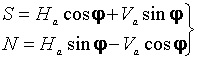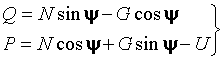在立视图上,滑动面与垂线的夹角为 ,再将N力分解为平行及垂直拱座面的分力Q及P: