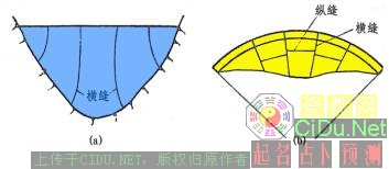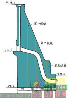拱坝是整体结构,一般不作永久性的结构分缝,但施工需要分段浇筑,各段间设收缩缝,待坝体温度冷却至稳定温度时灌浆封填,使坝成为整体。图3.22为拱坝的横缝和纵缝示意图。//by http://CiDu.Net/