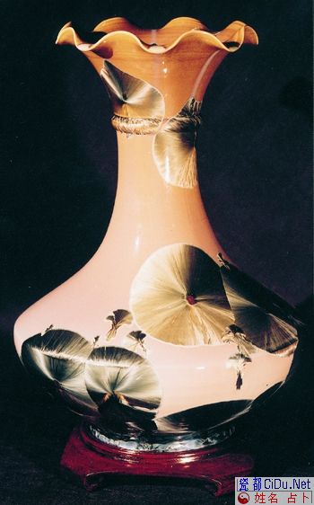 在许先生客厅,有几件瓷瓶作品引起我的兴趣,瓶颈、瓶身晶莹的花儿重重叠叠,颜色由浅黄到浅紫,由浅紫到青,由青到蓝,一朵朵竟相开放,象雨伞、象蘑菇、象云彩、象海浪。许先生的儿子许瑞峰说,这是他们父子近年来研究的产品,叫结晶釉,还有一种叫辣椒红。属窑变系列。结晶釉的特点是结晶花色均匀,色泽丰富,亮度好。它是经过高温窑变天然形成的,每一件作品都不一样。目前,景德镇、佛山等地也有同行研制,但成功率相当低,且结晶花控制得不够理想。//by http://CiDu.Net/