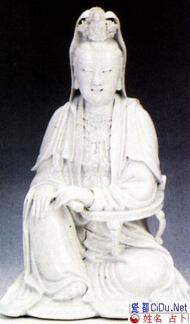 清代德化白瓷观音坐像,高三十四厘米,有裂纹。 何来观音生动传神 明代福建德化白瓷观音像中,最值得收藏的是“何来观音”。 何来是瓷雕观音名家何朝宗的别号。他所制的瓷雕观音,显出一副温柔慈祥相,而且对比手法的强烈,主次分明,衣纹深而洗练,如迎风轻飘,脸部 画细腻,比较明代另外两位瓷雕名师张寿山和林朝景为胜。 何朝宗是明代嘉靖、万历年间人;他的作品有性格,最能显示德化瓷雕的传统精神。他追求单纯的雕塑美,拼弃彩饰;把“ 衣出水”、“五带当风”的画风现诸瓷雕上。 他所瓷雕的观音像传神、生动,多数是长圆脸,双眼微合,显得端庄;衣褶流畅,淡雅可爱。 所谓“除非观音离南海,何来大士现真身”,就是指他精妙入神的德化白瓷观音。//by http://CiDu.Net/