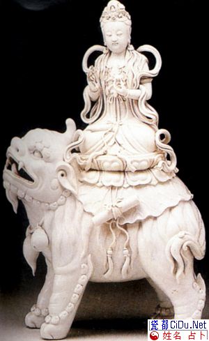| 清代德化白瓷骑麒麟坐莲观音像 |
