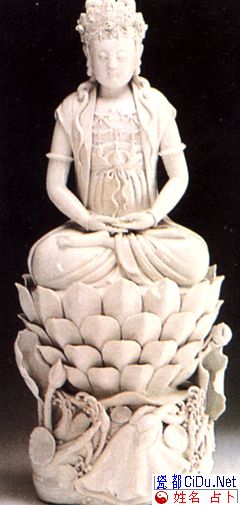 清代德化白瓷坐莲观音像,高四十五厘米。 “观世音”名号的含义 佛教认为,人世间的一切都是“苦”的,生活在这个世界上的众生,要遭受恶的、有毒的事情的侵害,要产生出诸多的烦恼。啼饥号寒,求生祈命的痛苦呼声,总是不断的。观世音,就是细心地,深入地观察着,寻找着世界上一切苦难的呼救声音。世上所有的男女老少,凡遇到灾难时,只要诚心诚意称呼观世音菩萨的名号,请求救助,观世音菩萨就会即时观察到你的苦难,听到你呼救的声音。观世音菩萨就会以大无畏的精神,用适当的化身,救你脱离苦海。正如《法华经.普门品》所讲:“应以何身得度者。即现何身而为说法”。所以说观世音菩萨名号的含义,就是大慈大悲,循声救苦,无处不现身。cidu.net 唐朝的佛教法师和学者玄奘在译《般若波罗密多心经》时,将观世音改译为观自在。观自在名号的含义,是说这位菩萨的智慧已经达到了世上一切事物(物质的和精神的)都不能妨碍他的行动,更不能动摇他的信心。这位菩萨对世上一切事物都观察了解得非常深透,因此在自我修持和普济众生时都是运用的十分自如无碍。如果用哲学中的辨证法来解释观自在这个名词,就是说这位菩萨对客观一切事物的认识程度(也可以说是觉悟),已经从“必然王国”飞跃到“自由王国”,从心所欲,不无障碍。 从唐朝开始,因唐太宗的名字叫李世民,在用文字时,就要避开皇帝的名字,于是观世音就称观音。这种反动的封建专制的东西,应该取缔,我们称观世音,意思才完整。因为观世音菩萨是观察到世间众生的苦难后就闻声去救苦,如果去掉“世”字,意思就不完整了。//by http://CiDu.Net/