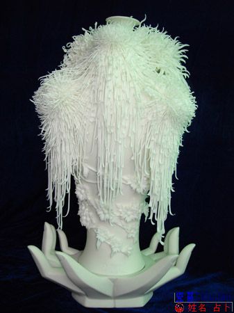 据了解,瓷雕《吉祥平安》选自德化深山上乘高岭土,经精选加工沉积20多年,质地如脂如玉,温润雪白。制作工艺精细,朵朵花蕊,全靠手工一条条、一瓣瓣耐心地搓、捏、推、贴衔接而成,数十个工作日乃成一件。//by http://CiDu.Net/