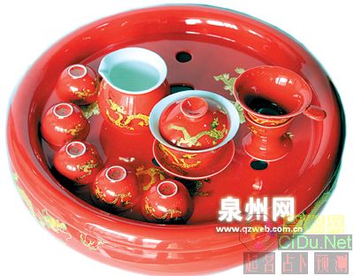 据介绍,是由于红釉面瓷器最难烧制。“红釉面瓷器要高达1300多摄氏度的高温才能烧制出来。温度低了,烧出来的釉面颜色深沉、光彩不足;温度过高,釉面容易产生不均匀的状态,并且容易烧裂。总之,温度要控制得刚刚好,烧出的才是上品。”说到红釉面陶瓷茶具的开发,不过才短短的一年时间。“去年7月份,德化才正式推出了红釉面陶瓷茶具。虽然是同黄釉面、蓝釉面一起开发研制的,但红釉面的难度高多了,整整比黄、蓝釉面迟了三个月才开发出来。”