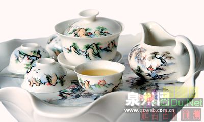 漂亮的山水图案,为茶具增添了浓郁的文化气息.