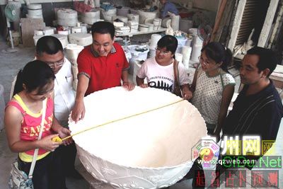 19日,市委常委、宣传部长宋长青到德化调研时,看了刚刚出炉的“闽台第一碗”后,深为该碗精雕细琢的制作工艺所吸引。他向创作者详细了解了大碗的制作过程,并充分肯定了该碗所包含的深厚文化内涵。