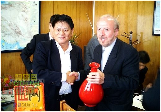 七百年前,东方第一大港泉州德化生产的瓷器大量销往波斯,波斯人领略到来自东方瓷器的风采, “海上丝瓷之路” 因此举世闻名。七百年后的2006年8月,一枚产自德化瓷都的高温国宾礼品红釉瓷——富贵红“玉壶春”,伴随着中国海洋石油总公司高级人员一同出访伊朗(前称为波斯),当伊朗石油部长马罕内赫接受这份来自中国瓷都德化的礼物时欣喜不已。