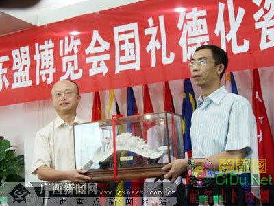 在昨日的新闻发布会上,中国-东盟博览会秘书处副秘书长杨京凯向“国花集瑞”的制作企业——福建德化大千瓷苑代表颁发了证书。博览会期间,“国花集瑞”将作为赠送给东盟客人的特殊礼物,成为中国与东盟国家的友好使者,传播独具特色的中国民族文化,为博览会添彩。//by http://CiDu.Net/