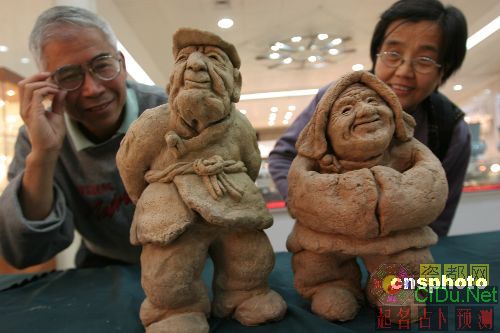 10月31日,参观者在观看名为《老头》、《老太》的陶瓷作品。“第二届全国八大名窑陶瓷大师精品展”在北京首都图书馆免费向公众展出,展览汇集了江西景德镇窑、浙江龙泉窑、福建德化窑等全国八大名窑100位名家的800件精品。 中新社发 陈晓根 摄