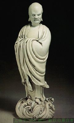 福建德化窑雕瓷,以其着意刻画塑像的内涵而著称。在德化的雕像中,被人熟知的是这尊带有何朝宗背款的渡海达摩立像。//by http://CiDu.Net/