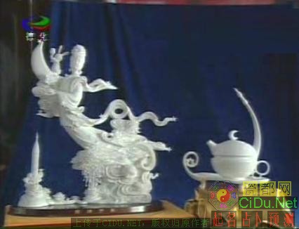 由高级工艺美术师陈仁海创作的中国白瓷雕《嫦娥一号》,由象征着“天地人”的壶、杯、盘三部分组成。壶套于杯上,壶柄象征飞入太空的火箭,壶面及壶盖上星星闪烁,壶盖的旋钮为一轮弯月,笑迎火箭,形象生动。