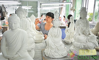 德化发展陶瓷业优势明显,形成了传统瓷雕、西洋工艺瓷、日用瓷等齐头并进的陶瓷产业格局,巩固了陶瓷业的支柱产业地位。图为一家陶瓷研究所的陶瓷工艺大师正在创作传统瓷雕。