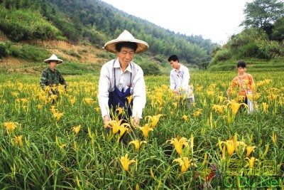 在“黄花菜之乡”德化县春美乡,一朵黄花菜带动了农村经济的发展。图为菜农正在采摘黄花菜。