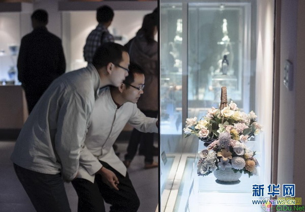 5月9日,参观者在德化县陶瓷博物馆参观现代陶瓷工艺品。 新华社记者 姜克红 摄