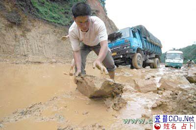 搬离堵在路中的石头